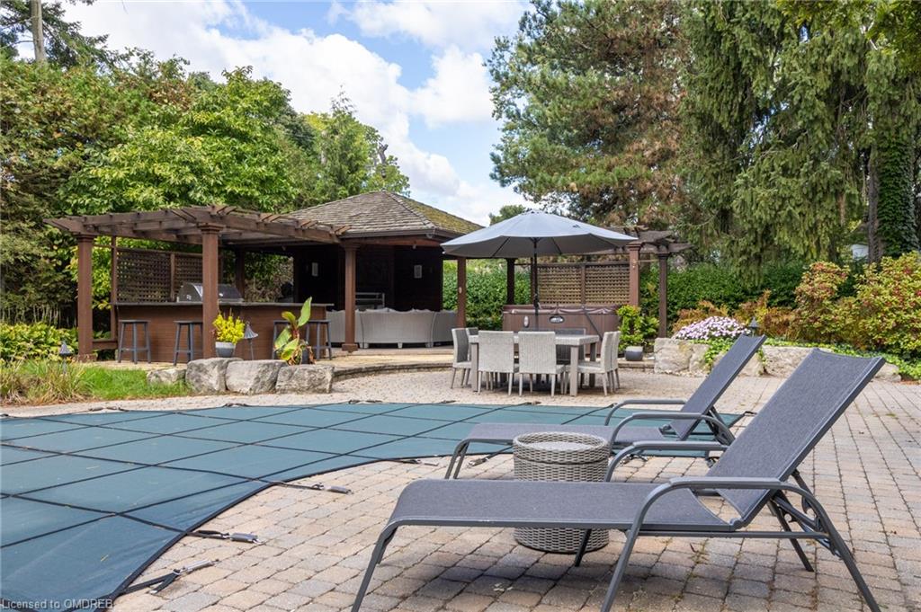 Introducing 158 Dornie Rd, an exquisite executive home in the prestigious Southeast Oakville community. This 4-bedroom, 4-bath residence offers over 4,100 square feet of thoughtfully designed living space, blending luxury and comfort for the modern family. The main level features a spacious family room with built-in cabinetry, a wet bar, and backyard access—perfect for casual gatherings. A private office with custom cabinetry makes working from home convenient and comfortable. Interior access from the garage to a functional mud/laundry room completes this level. At the heart of the home is the gourmet kitchen, with built-in appliances, dual sinks, a large island, and a bright breakfast area overlooking the backyard. The formal dining room adjoins an elegant living room, enhanced by a servery with an extra sink—ideal for entertaining. The third level boasts the primary suite, offering a luxurious 5-piece ensuite and a walk-in closet. Two additional bedrooms and a 5-piece bath complete this floor. The fully finished basement includes a recreation room, a fourth bedroom with a 3-piece ensuite, and extra storage. The backyard oasis is perfect for entertaining, featuring a gunite pool, custom outdoor kitchen, cedar cabana with a gas fireplace, TV area with built-in speakers, and a hot tub—all surrounded by professional landscaping for privacy. Steps from Gairloch Gardens, trails, and Lake Ontario, this home is close to the GO Train, highways, downtown Oakville’s shops, restaurants, and top-rated schools. 158 Dornie Rd offers charm, elegance, and an unbeatable location—this property is a must-see!
