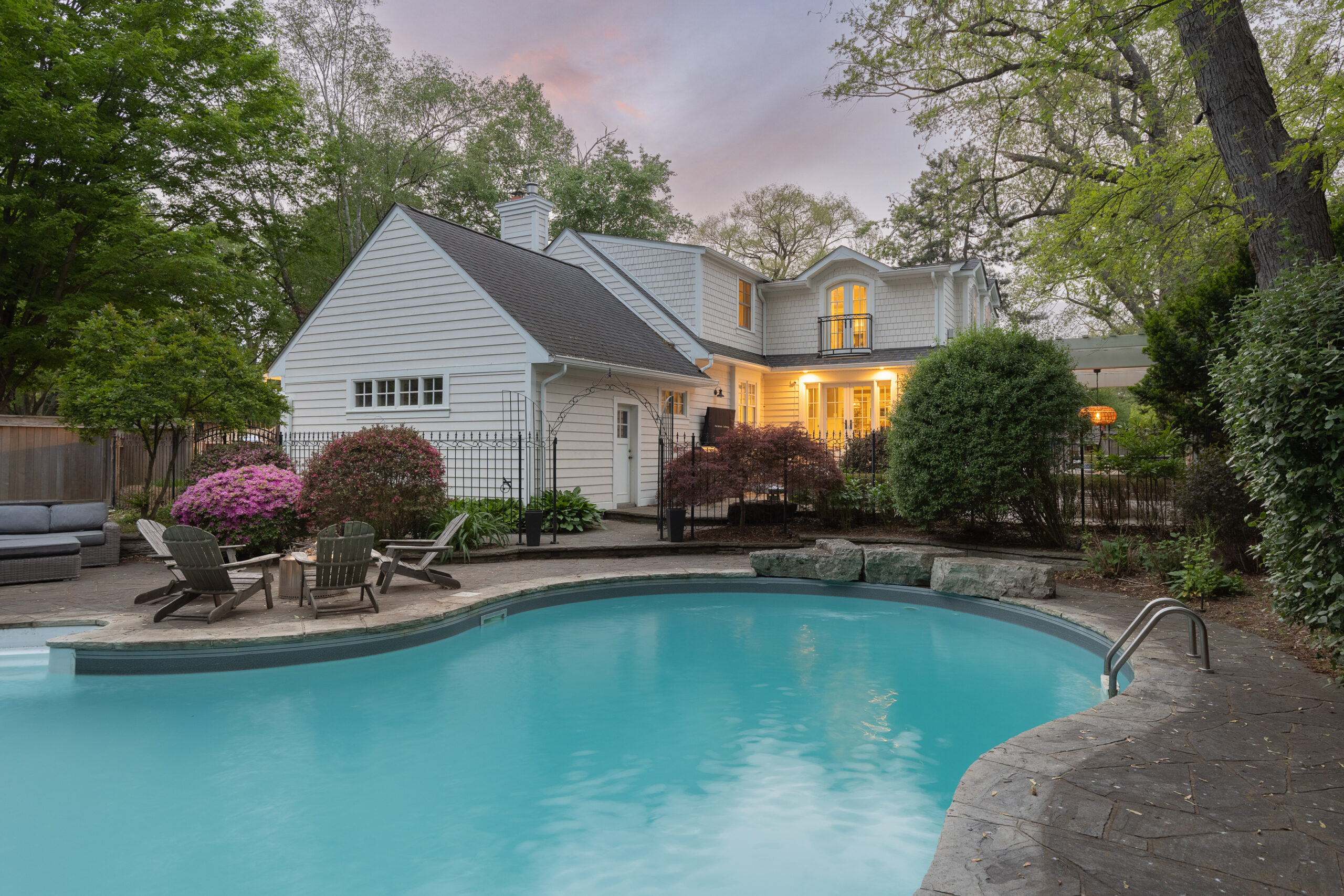 Family Living Meets Timeless Charm in Prestigious Oakville, Discover a stunning residence on one of Oakville's most coveted streets, where privacy and prestige meet. This home offers 3,373 square feet of meticulously designed living space, plus 1,359 square feet of lower-level entertainment space. Step inside to custom hardwood floors flowing throughout. The kitchen is a culinary masterpiece featuring top-tier stainless steel appliances and a built-in Miele coffee maker. The family-friendly floor plan is ideal for casual or formal gatherings, with a spacious living room and gas fireplace. French doors lead to a brand-new Muskoka room with elegant sliding screen windows. A separate dining room with a gas fireplace completes the perfect setting. The primary bedroom is a sanctuary with a fireplace and spa-like ensuite, including a freestanding soaker tub and heated floors. Two generously sized bedrooms for children or guests share a charming bathroom with refined finishes. The lower level features a state-of-the-art movie theatre and custom wine feature. Five fireplaces create warmth and intimacy, while hidden speakers deliver immersive audio in the living room. The resort-style backyard includes an inground pool, hot tub, sauna, putting green, and playset, merging with parkland for a private retreat. Recent upgrades include a new furnace and air conditioning (2023). Permits are in place for expanding with a second primary suite and garage. Walking distance to downtown Oakville and in a top school district, this home redefines luxury living.