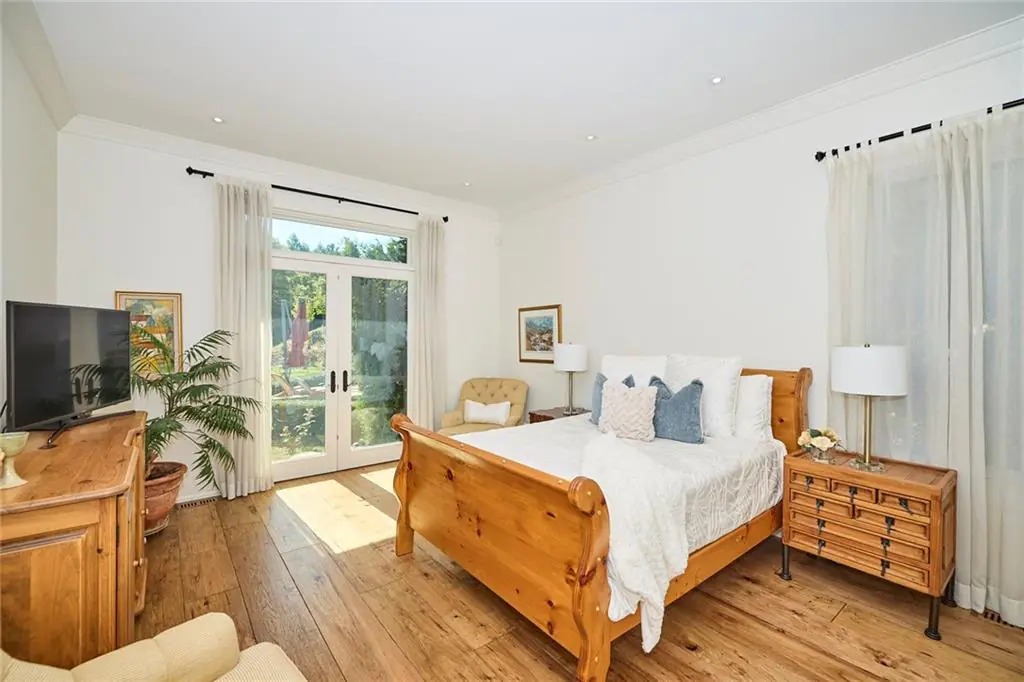 The main floor with 10’ ceilings offers a spacious living room with built-in shelving & wood-burning stone fireplace. A spectacular kitchen offers built-in appliances, a huge granite island & countertops. All finishes throughout this home are superior, featuring wide plank hickory flooring, porcelain tile, pot lights & more. The spacious main floor primary suite has it all: skylight, fireplace, dressing room with storage, ensuite bath, double sinks, soaker tub, walk-in shower & private 2pc. Stunning main floor guest suite. Large main floor library/office with custom built in shelving & file cabinets. The property boasts over 7 acres of Terrain that can host Pinot Noir/Chardonnay vines.