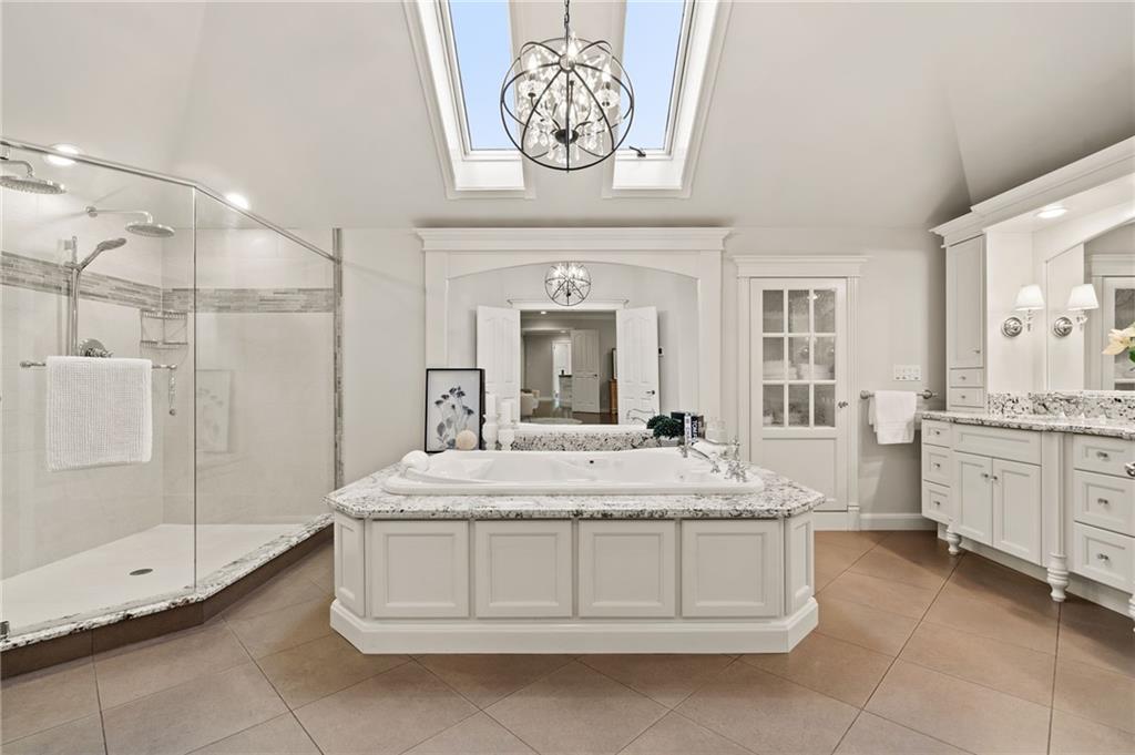 Magazine worthy estate home on a picturesque & resort-like lot! Backyard has irrigation to gardens, pots and hanging pots - and you’ll love the mature trees & perennial gardens! Other outdoor features: HEATED in-ground pool an oversized grand piano-shaped composite deck, all wired for speakers & rough-in wiring for a hot tub. The pool hut has a 40-amp electrical with an outside connection box for RVs. Recent upgrades in 2023 include all new windows throughout, new front door, soffit, fascia, steel dormers, new 5” gutters on the top roof and 6” gutters on the lower roof. The driveway has been widened and features 2-foot-deep concrete curbs and a 60’x20’x8” steel-reinforced concrete pad for RVs, boats, and extra parking. The TRIPLE garage has three new 10-foot-wide doors and is fully drywalled and finished, with an 8” reinforced concrete floor, epoxy coating, and 11 LED ceiling lights. The attic space is accessible by a drop-down ladder and offers additional storage space! Inside this majestic home, you’ll love that the MASSIVE great room, formal dining room and the kitchen is equipped with maple cabinetry, dovetailed soft-close drawers, a 48” WOLF dual fuel double stove, Bosch dishwasher, LED undermount counter lights and a massive walk-in pantry with a glass door and floor-to-ceiling shelving! Additional features include newly sanded hardwood floors, fresh paint throughout and updated lighting. The primary ensuite boasts a double shower with Hansgrohe hardware, a fully loaded Maxx tub with dual pumps, heater, air-pump, LED lighting, built-in linen closet with a glass door, and two skylights. The brand-new bathroom (2023) on the second floor and the Solatube lighting in the main bathroom complete the luxurious touches of this exceptional home. In-floor heating in the primary ensuite and main bathroom, a hand-cut roof with potential for expanding living space in the attic, and all window coverings, including drapery and plantation shutters. Come and fall in love!