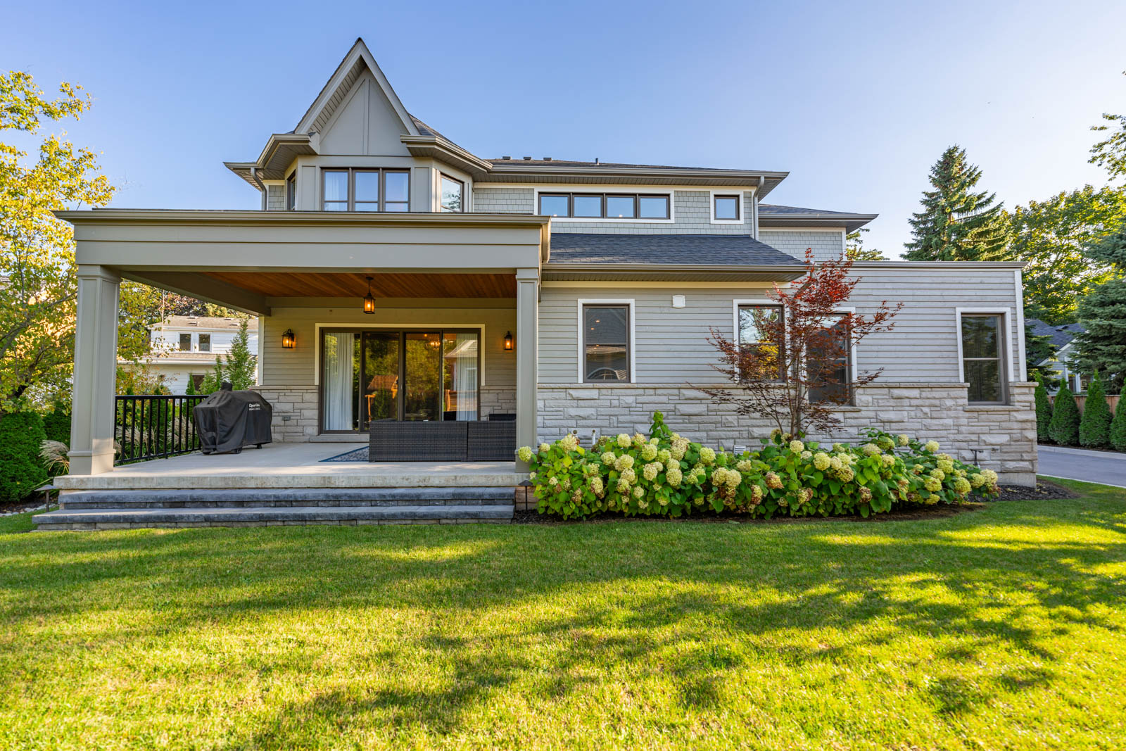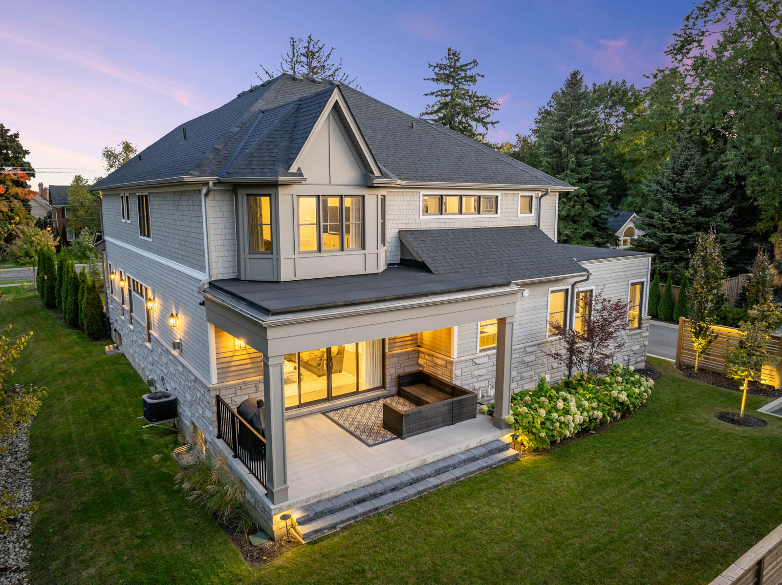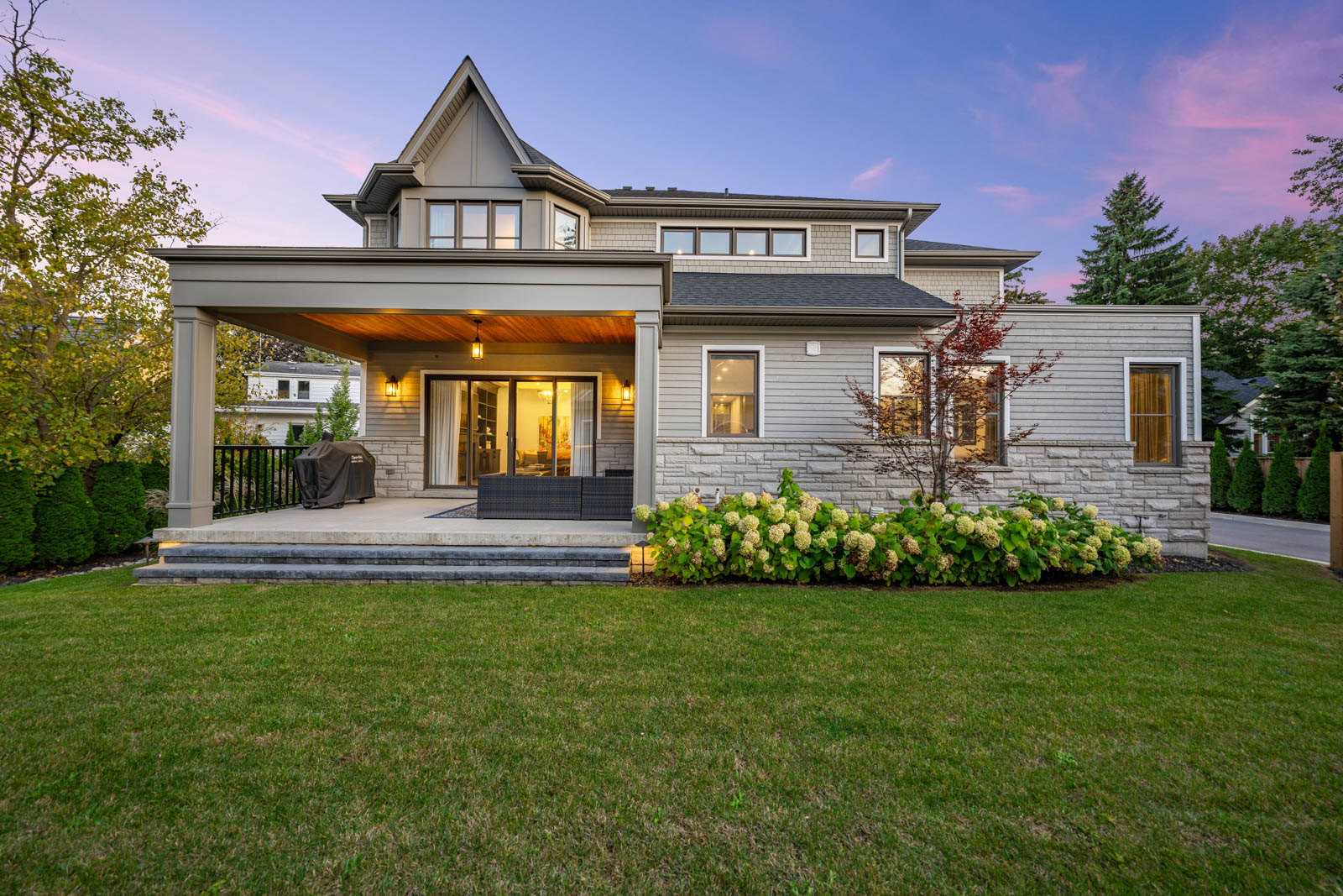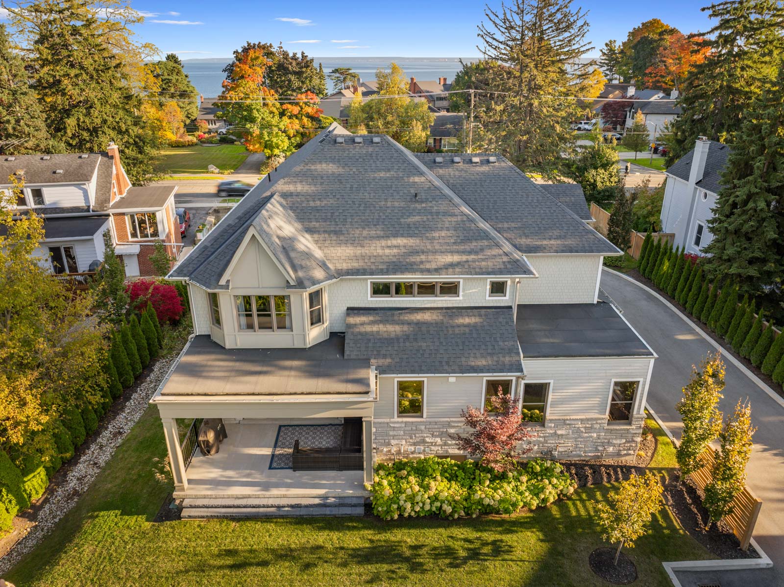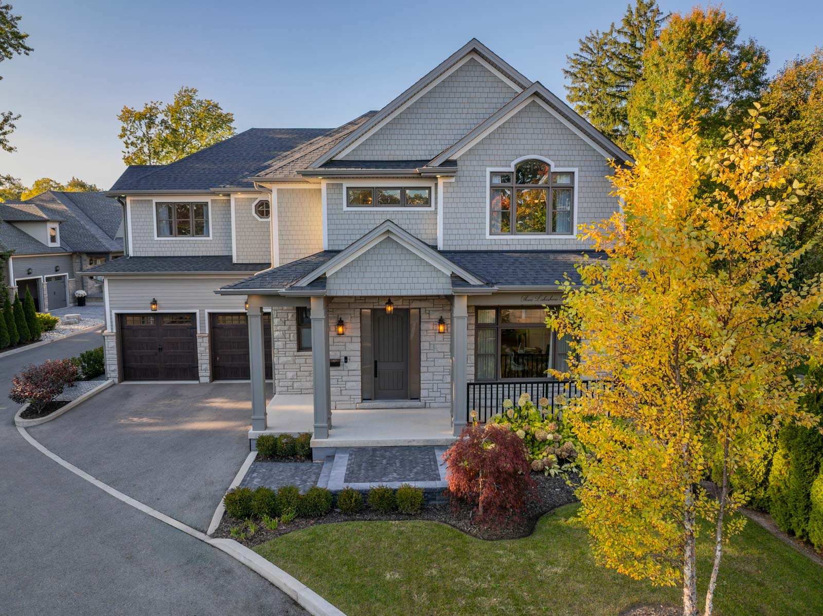 Your dream home awaits in an exclusive enclave just steps from Lake Ontario and minutes from downtown Burlington's shops, cafes, and restaurants. With 4+1 bedrooms and 6+2 bathrooms and a fully finished lower-level ideal for entertaining or extended family living this upgraded, custom home truly has it all. On the main level, hardwood floors, 10 foot ceilings, wainscoting, coffered ceilings, and an oak staircase with wrought iron accents set a refined tone. The home features formal living and dining rooms, as well as a main floor family room with custom built-ins, a gas fireplace and patio doors leading to the exterior. A convenient mud room with access to the double car garage adds to the practicality of the space. The customized kitchen boasts a large center island, quartz countertops, a gas range, stainless steel appliances, and a cozy breakfast area. Upstairs, the primary suite includes a dressing room, ensuite, and laundry, while three additional bedrooms each enjoy their own ensuite bath. The fully finished lower level offers a spacious living area with a fireplace, projector screen, built in speakers, glass enclosed gym, guest bedroom, and heated bathroom floors. Set on a low-maintenance lot, this home offers both convenience and luxury, with a landscaped front yard featuring a sprinkler system and security cameras, plus a covered rear patio designed for relaxing outdoor living.