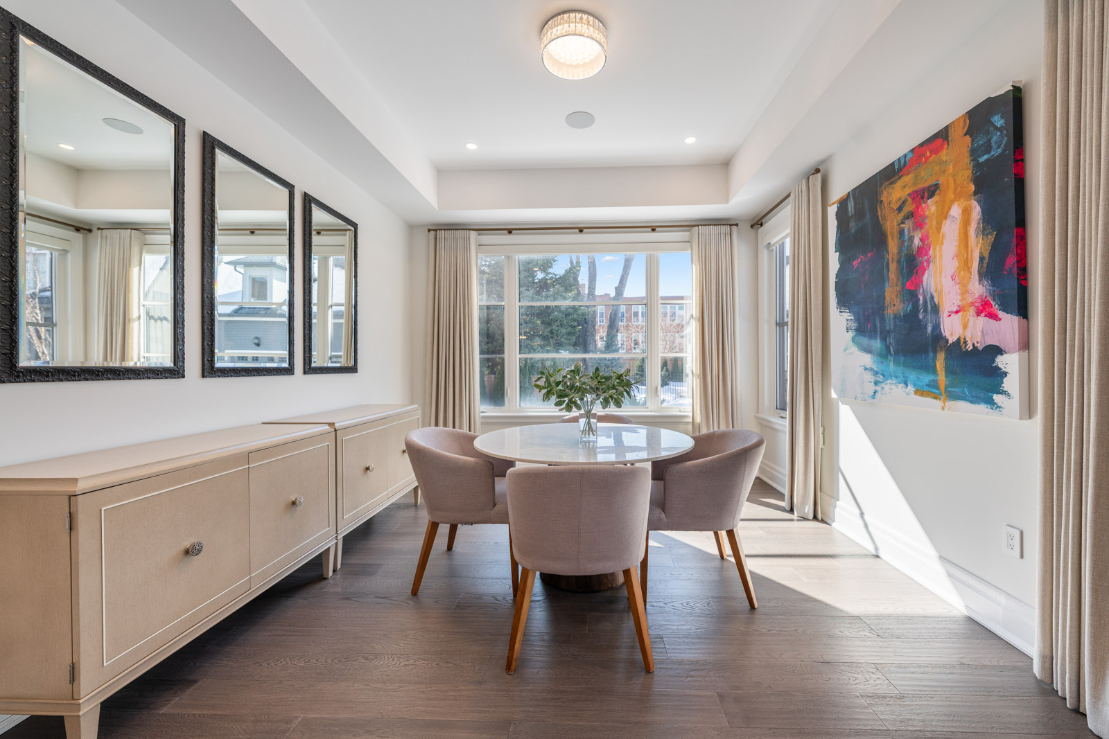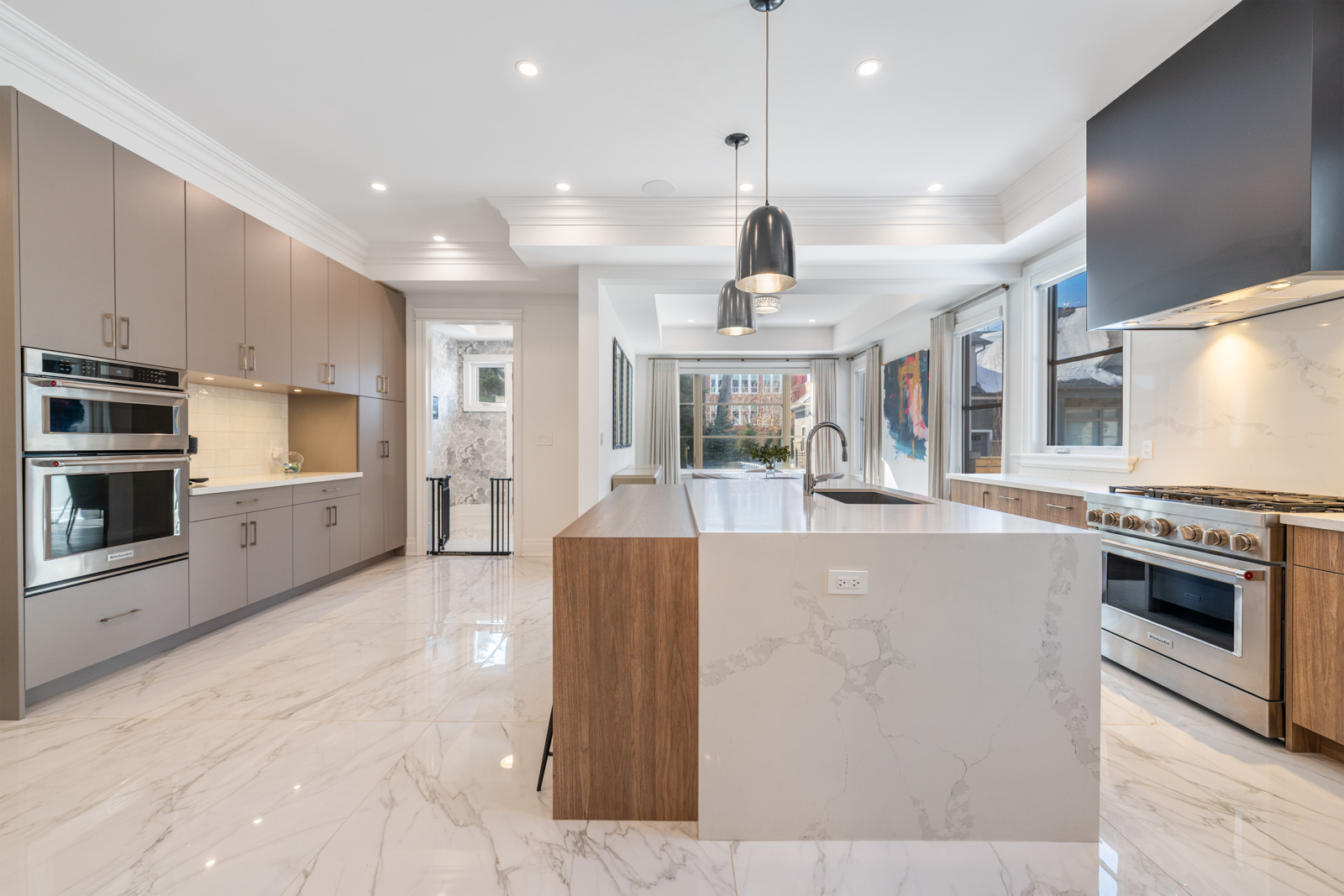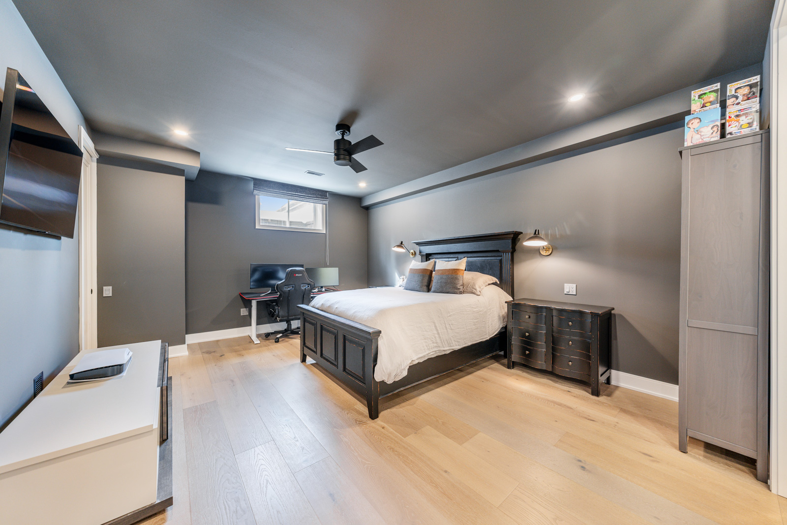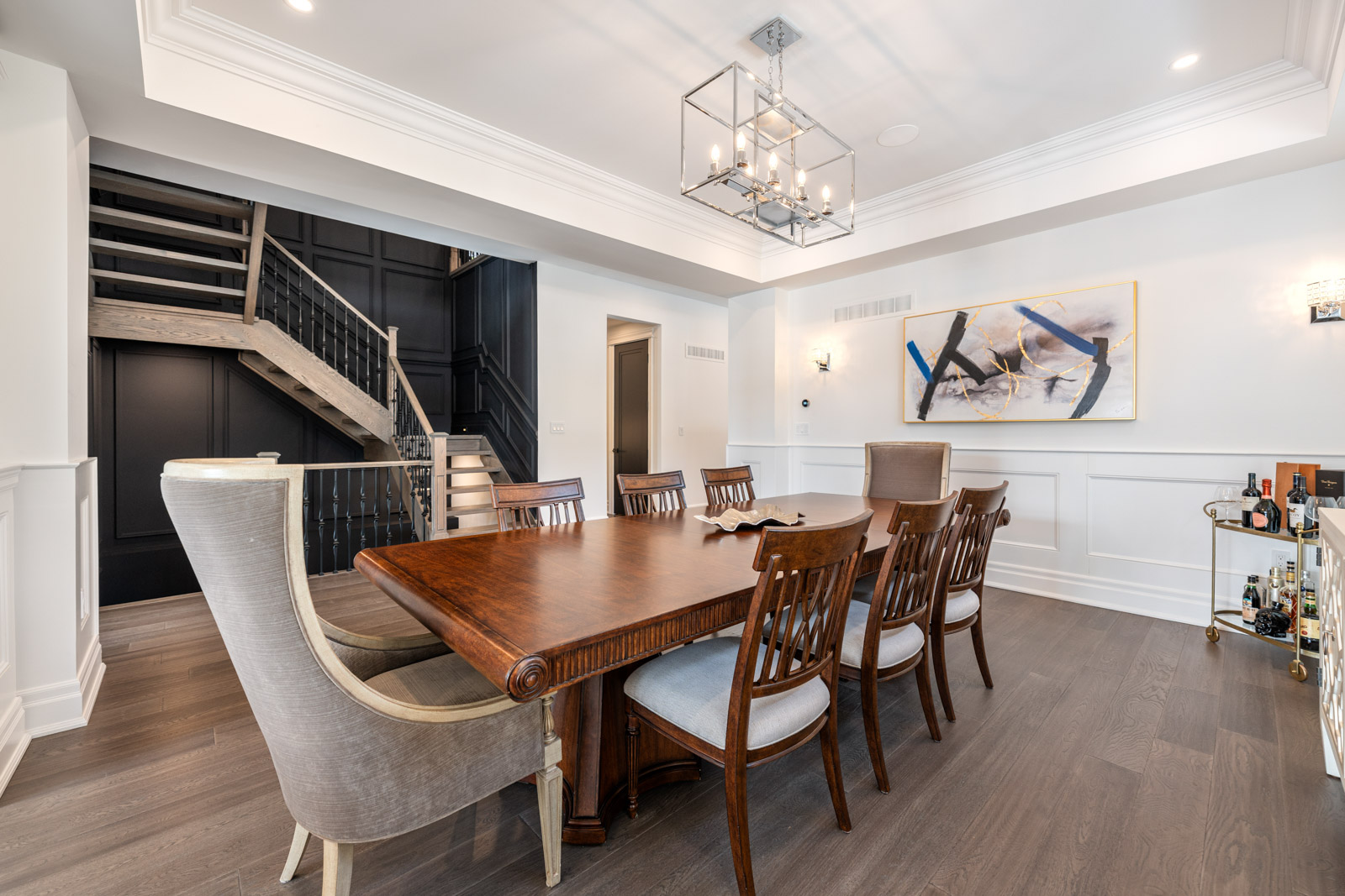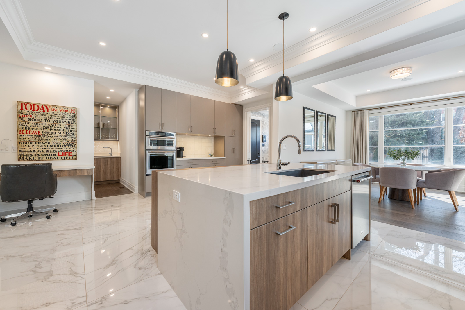 Your dream home awaits in an exclusive enclave just steps from Lake Ontario and minutes from downtown Burlington's shops, cafes, and restaurants. With 4+1 bedrooms and 6+2 bathrooms and a fully finished lower-level ideal for entertaining or extended family living this upgraded, custom home truly has it all. On the main level, hardwood floors, 10 foot ceilings, wainscoting, coffered ceilings, and an oak staircase with wrought iron accents set a refined tone. The home features formal living and dining rooms, as well as a main floor family room with custom built-ins, a gas fireplace and patio doors leading to the exterior. A convenient mud room with access to the double car garage adds to the practicality of the space. The customized kitchen boasts a large center island, quartz countertops, a gas range, stainless steel appliances, and a cozy breakfast area. Upstairs, the primary suite includes a dressing room, ensuite, and laundry, while three additional bedrooms each enjoy their own ensuite bath. The fully finished lower level offers a spacious living area with a fireplace, projector screen, built in speakers, glass enclosed gym, guest bedroom, and heated bathroom floors. Set on a low-maintenance lot, this home offers both convenience and luxury, with a landscaped front yard featuring a sprinkler system and security cameras, plus a covered rear patio designed for relaxing outdoor living.