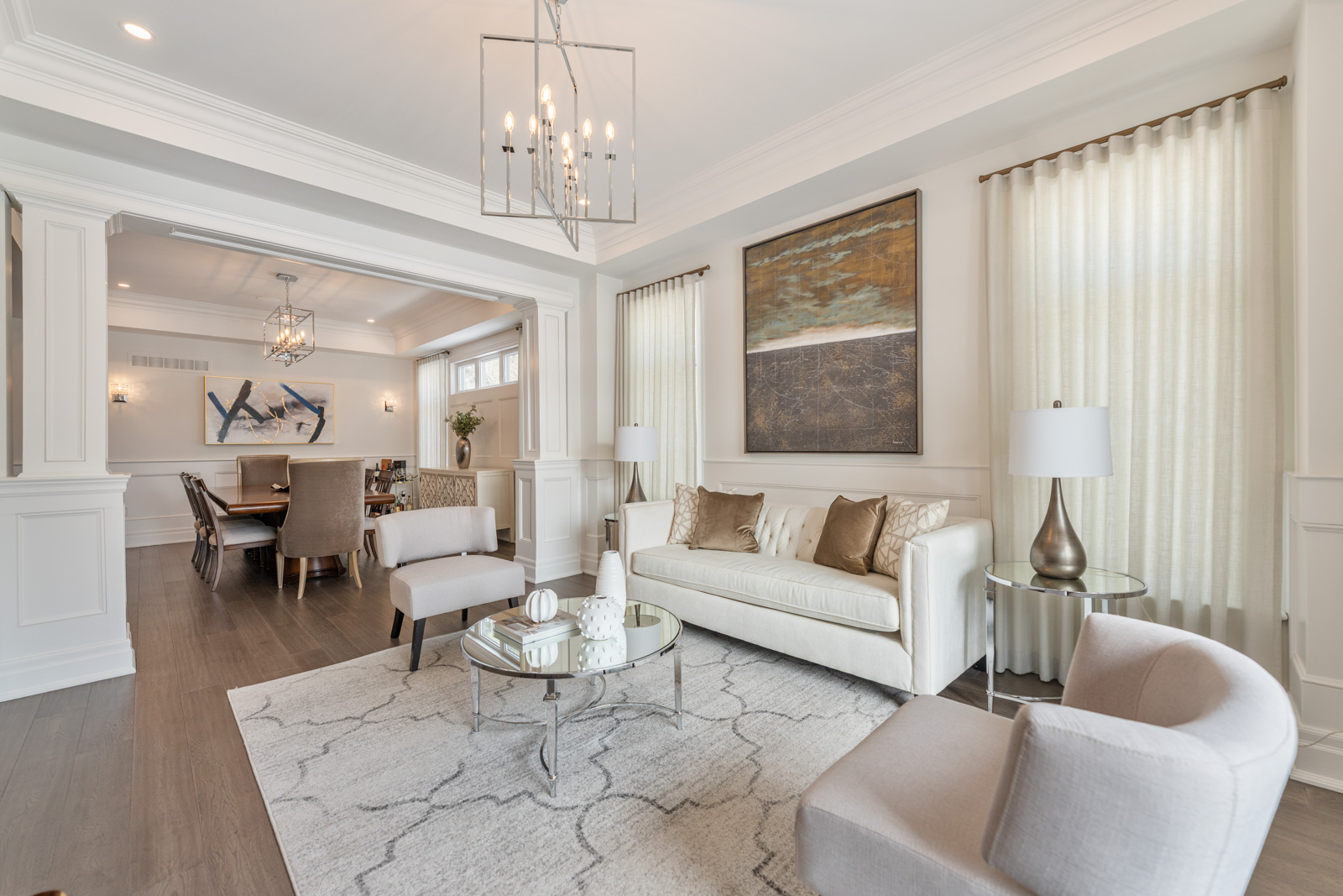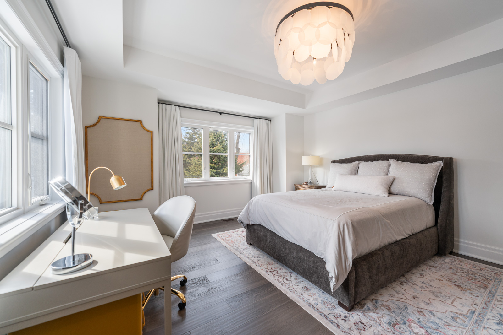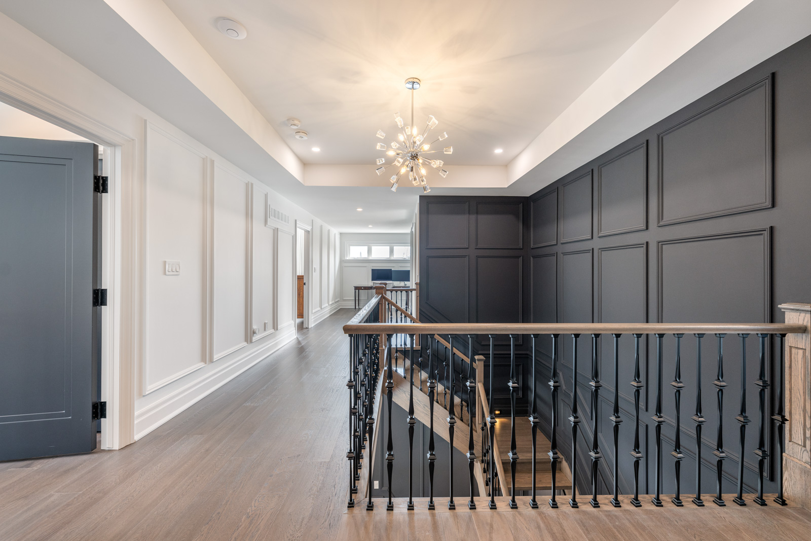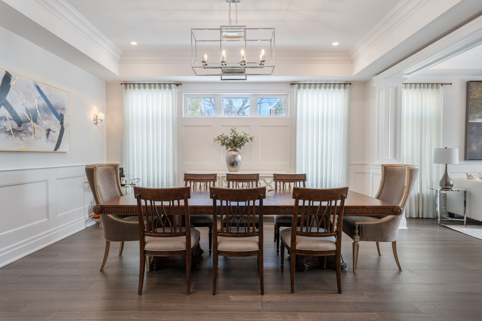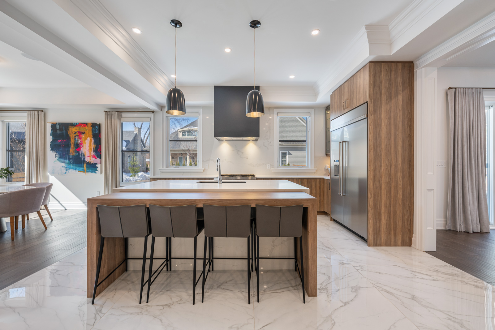 Your dream home awaits in an exclusive enclave just steps from Lake Ontario and minutes from downtown Burlington's shops, cafes, and restaurants. With 4+1 bedrooms and 6+2 bathrooms and a fully finished lower-level ideal for entertaining or extended family living this upgraded, custom home truly has it all. On the main level, hardwood floors, 10 foot ceilings, wainscoting, coffered ceilings, and an oak staircase with wrought iron accents set a refined tone. The home features formal living and dining rooms, as well as a main floor family room with custom built-ins, a gas fireplace and patio doors leading to the exterior. A convenient mud room with access to the double car garage adds to the practicality of the space. The customized kitchen boasts a large center island, quartz countertops, a gas range, stainless steel appliances, and a cozy breakfast area. Upstairs, the primary suite includes a dressing room, ensuite, and laundry, while three additional bedrooms each enjoy their own ensuite bath. The fully finished lower level offers a spacious living area with a fireplace, projector screen, built in speakers, glass enclosed gym, guest bedroom, and heated bathroom floors. Set on a low-maintenance lot, this home offers both convenience and luxury, with a landscaped front yard featuring a sprinkler system and security cameras, plus a covered rear patio designed for relaxing outdoor living.