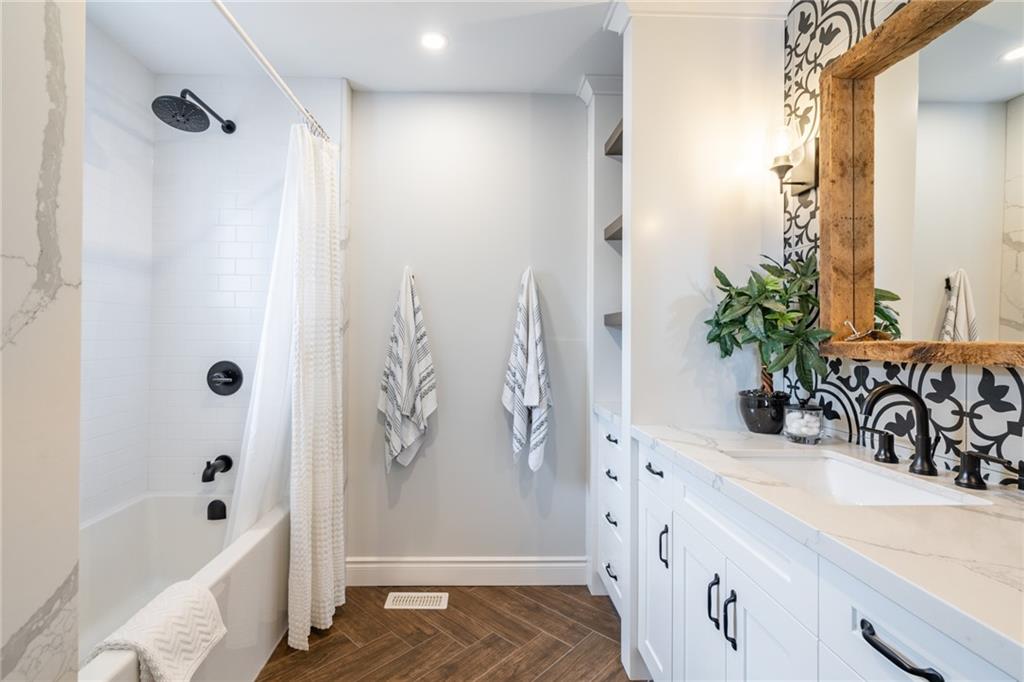 This stunning 2-storey home renovated to an open concept design creating the perfect flow for families or entertaining. The custom kitchen (2021) is complete with Dual Fuel Fisher-Paykel Range, Stainless steel appliances, ++ counter & storage space, large island, quartz countertops, adjoining pantry/mudroom. Kitchen opens up to the spacious Great Room, complete with new Fireplace, Wet bar with Wine Fridge. The large custom sliding doors provide the main level with an abundance of natural light and a great view of the spectacular backyard oasis where the entertaining can continue on.
