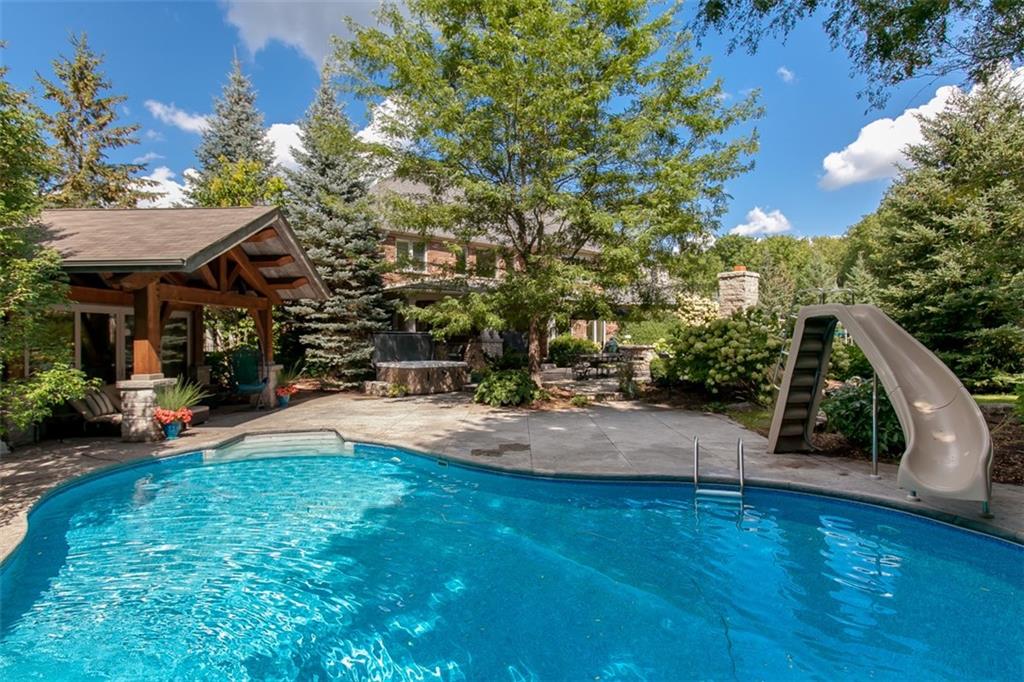 Partially finished basement offering additional family room with fireplace, exercise room and 3 pce bath. Many additional features...too numerous to mention. Cul de sac location making this the ideal home for a growing family or empty nesters looking for a place to entertain their grandchildren. Walking distance to schools, library, the Cascata Bistro and the general store/bakery. Close proximity to major highways. Let's get you home!