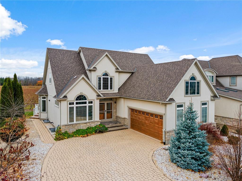 With breathtaking views of the sprawling Jackson Triggs vineyard out every rear window you will feel as though you have escaped to the hills of Tuscany but you are nestled in the heart of one of the most desirable places to live in Canada: Niagara on the Lake! When you arrive, you will first note the opulent curb appeal, as you follow the double wide interlocking stone driveway to the attached double garage, double wide French door entrance that welcomes you to the vaulted ceiling foyer! Inside you will love the hardwood floors, open concept kitchen w gas stove, a gas fireplace in the sitting area off the kitchen, a bonus family room/living room that is currently set up as a dining room and on the right side of the home you will find a jumbo primary bedroom with two walk in closets and a large bathroom with walk-in glass shower.