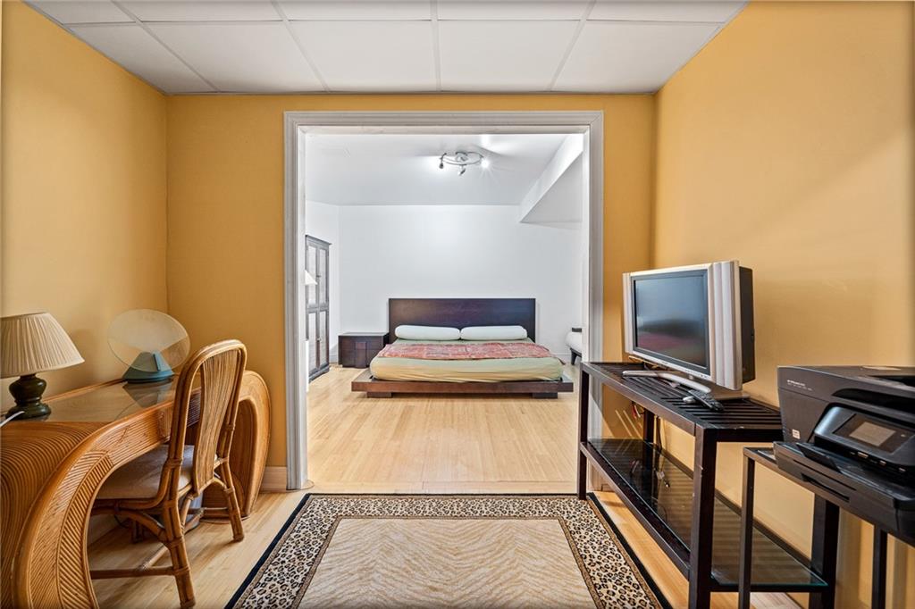 This primary bedroom on the main floor is currently being used as a formal family room (as shown in photos) but can easily be converted back to a mn flr bedroom! Up the beautiful wood staircase with upgraded railings you will find two more large bedrooms: one with a full bathroom that acts as a perfect secondary master/primary bedroom and the other makes for a perfect guest bedroom or office. Down in the fully finished basement, you will find wonderful pot lights, a newly added second kitchen, another full bathroom and a FOURTH bedroom. Other bonuses included: additional finished basement spaces that can be used either as an office area!
