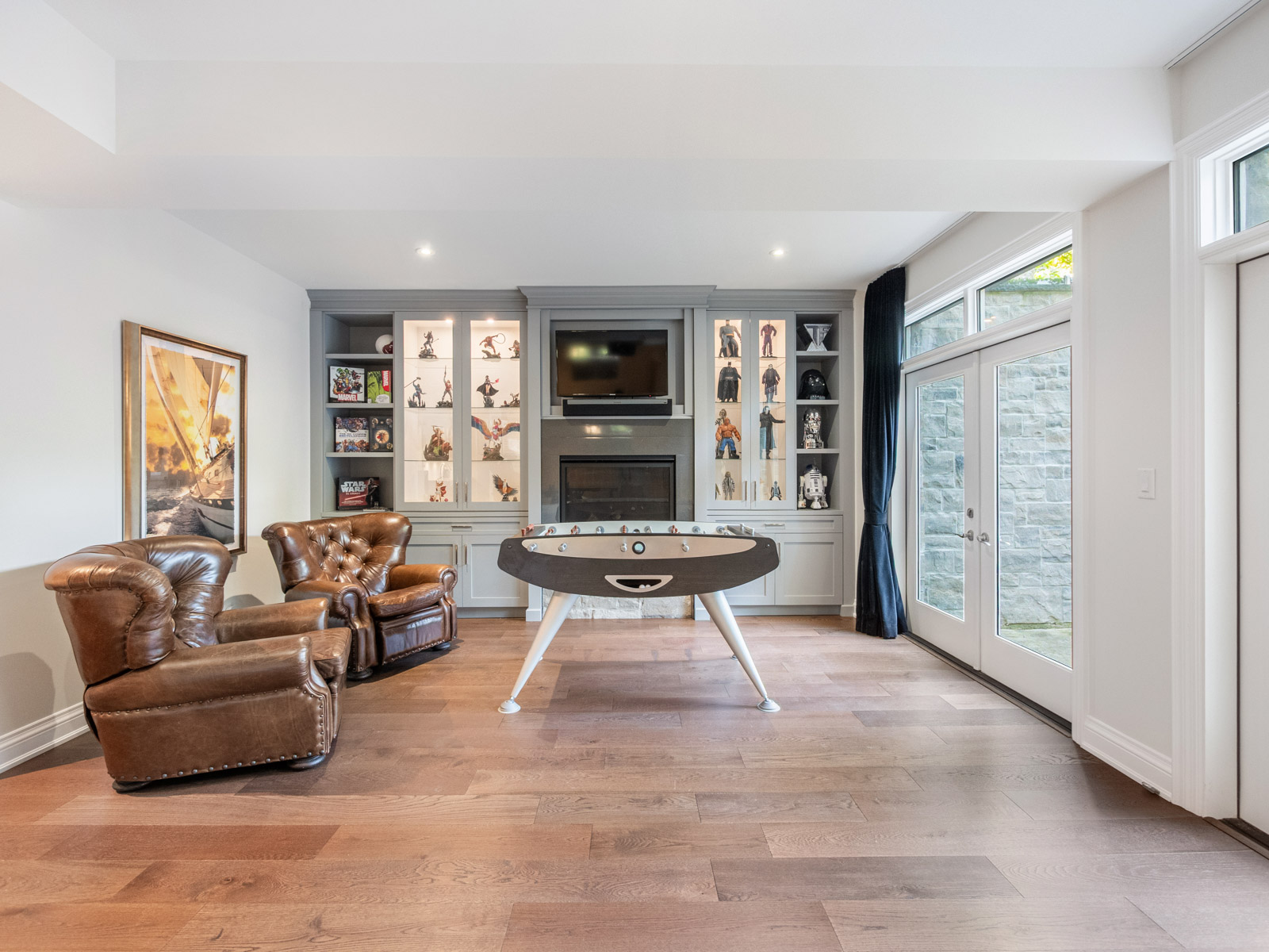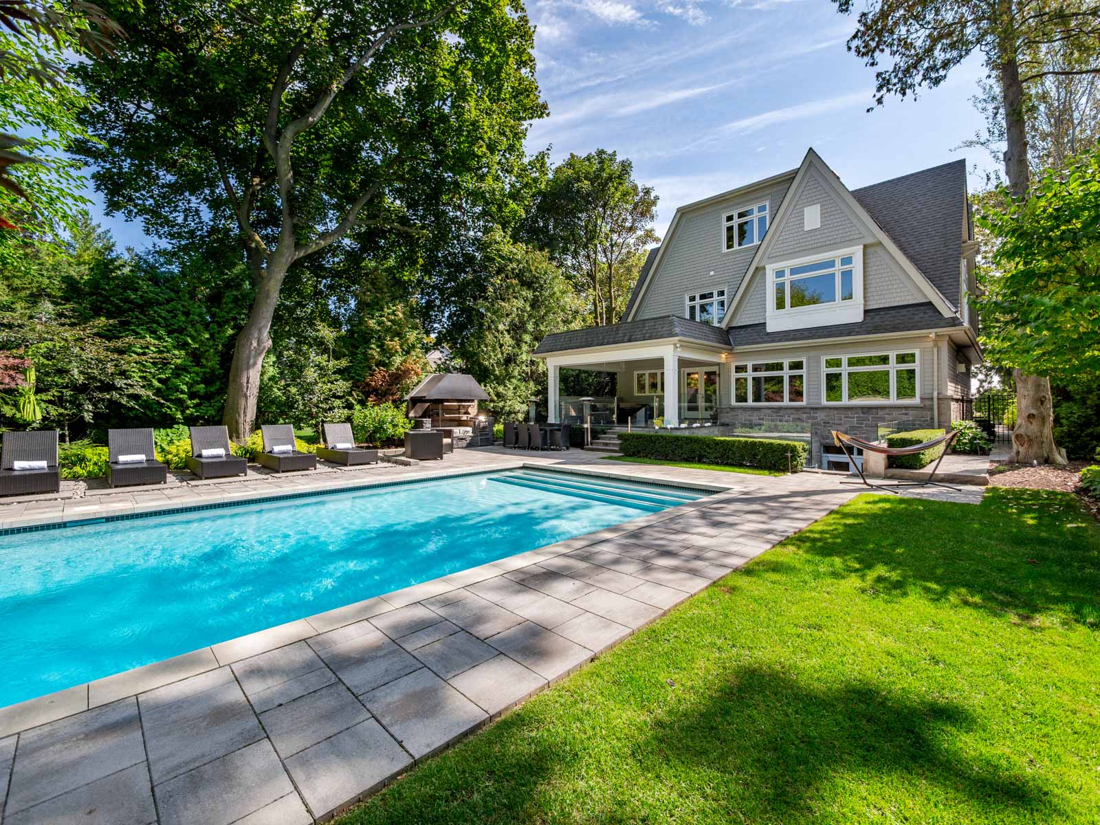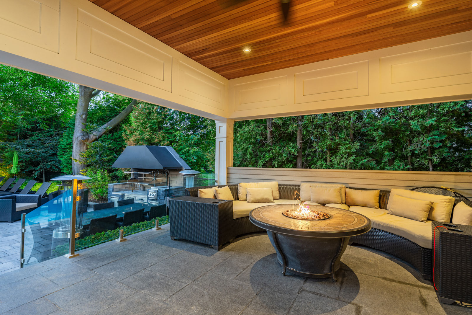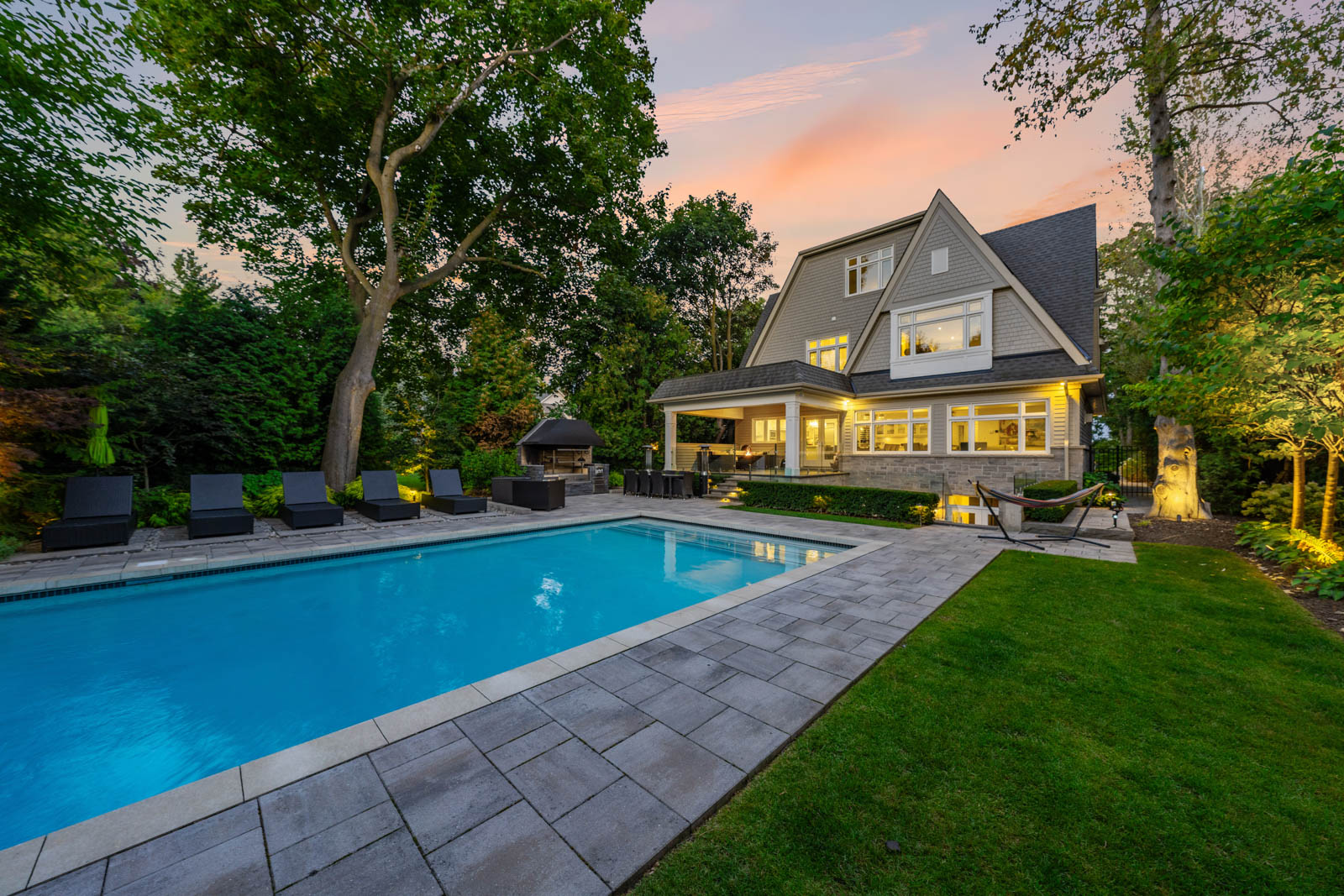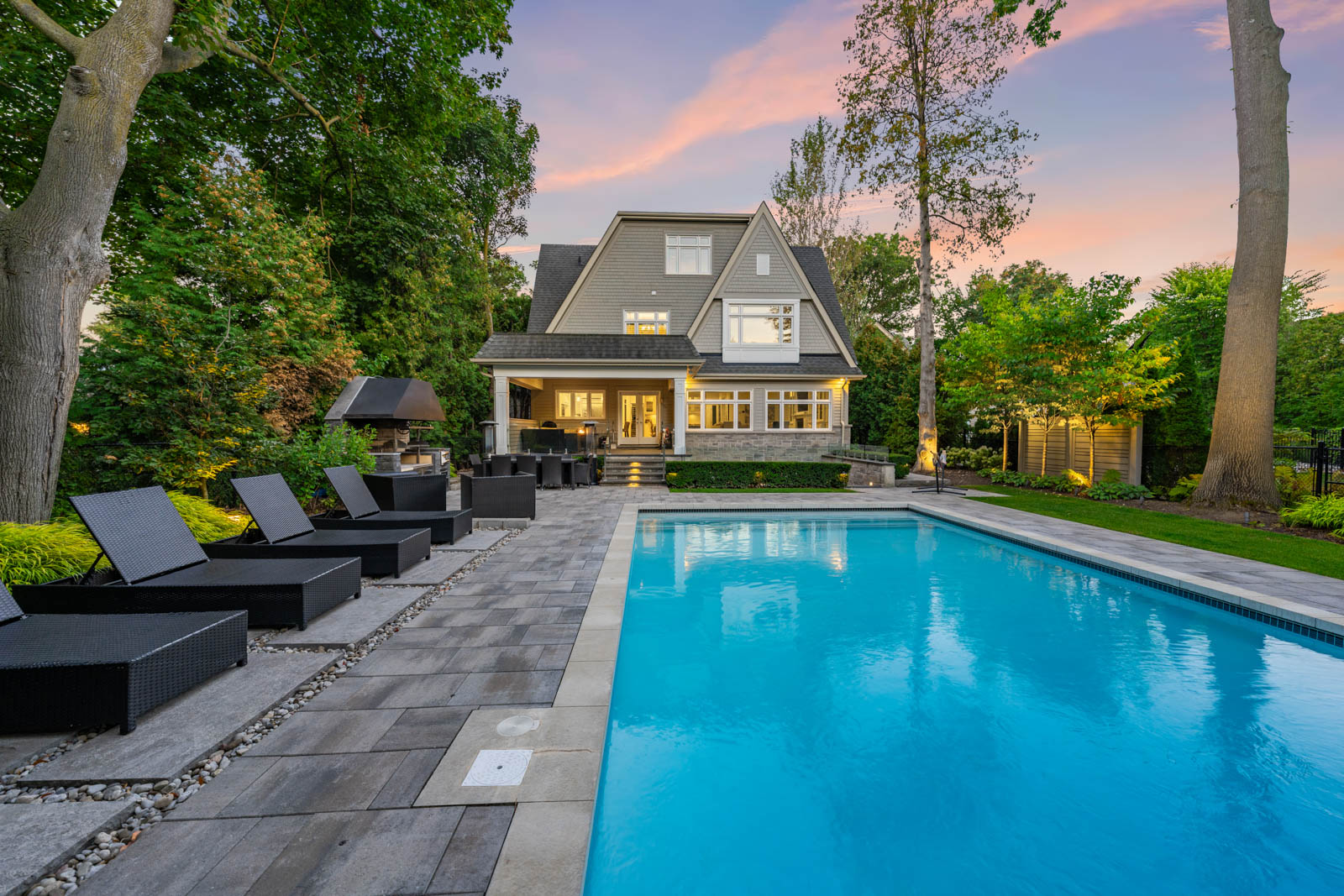 Set on prestigious Lakeshore Road in Roseland, one of Burlington's most sought-after neighbourhoods, this custom-built residence offers over 6,000 square feet of finely finished living space on a rare 217-foot-deep property. Located within the Tuck/ Nelson school district and just steps from the lake, it combines an exceptional address with remarkable scale and design. The main level is anchored by an elegant great room with a gas fireplace, custom built-ins with glass accents, and expansive windows overlooking the rear gardens. A private home office, formal dining area with a wet bar, and a chefs kitchen designed for both daily living and entertaining set the tone for the home. The kitchen features a large quartz island with seating, dual dishwashers, dual Frigidaire Professional wall ovens, a gas range with decorative hood, warming drawer, microwave, and KitchenAid stainless steel refrigerator with ice and water. Custom soft-close cabinetry, a walk-in pantry, and a walkout to the covered patio complete this well-appointed space. A separate main floor laundry room with custom cabinetry, quartz counters, adds convenience. Upstairs, four bedrooms each feature their own private ensuite baths and custom closet organizers, including a self-contained in-law suite with a separate entrance featuring a living area, bedroom, and full bath ideal for extended family. The 3rd loft, currently used as a gym, offers flexibility as an additional bedroom or creative studio. The fully finished lower level extends the living space with a large recreation room with a wet bar, sitting area with gas fireplace, sixth bedroom with ensuite, music/media room, and a walk-up to the backyard. Set on a 200-foot-deep lot, the property offers rare privacy and scale, with a resort-style backyard featuring a heated saltwater pool, stone patio, covered terrace and outdoor kitchen. A three-car garage and additional parking complete this distinguished home, just minutes from downtown Burlington and the lakefront.