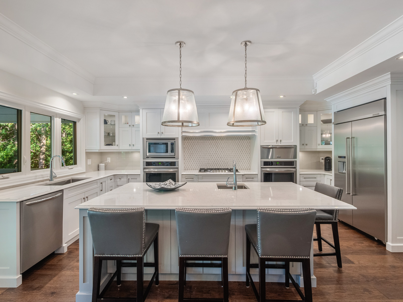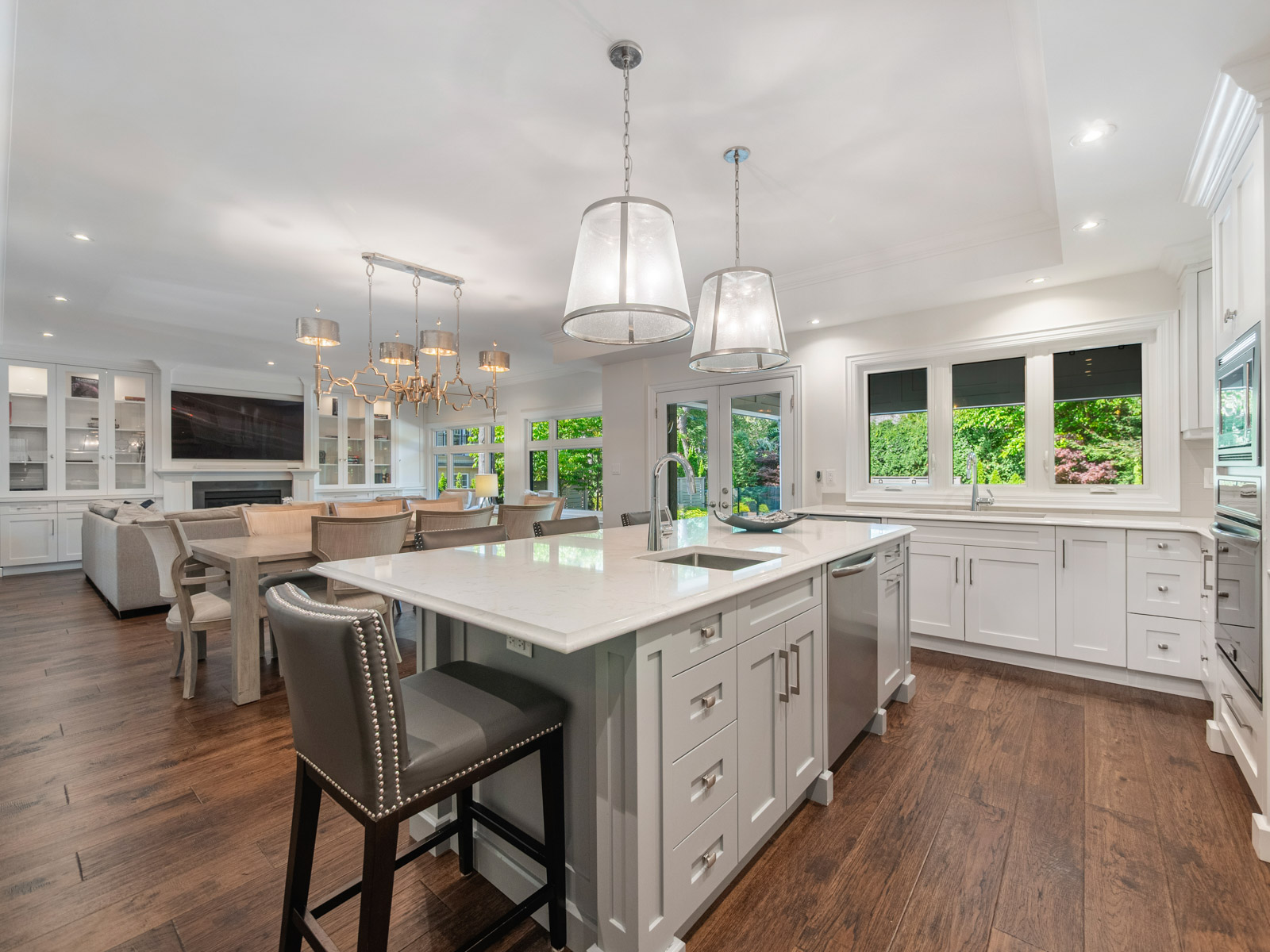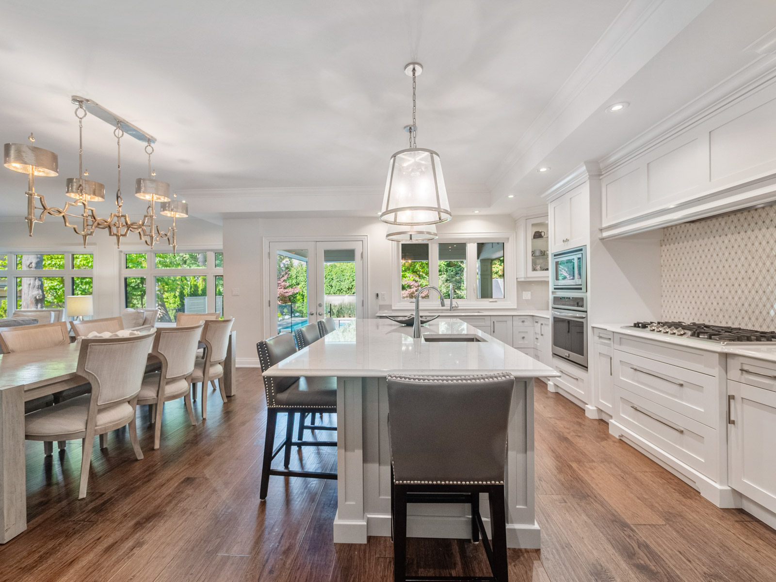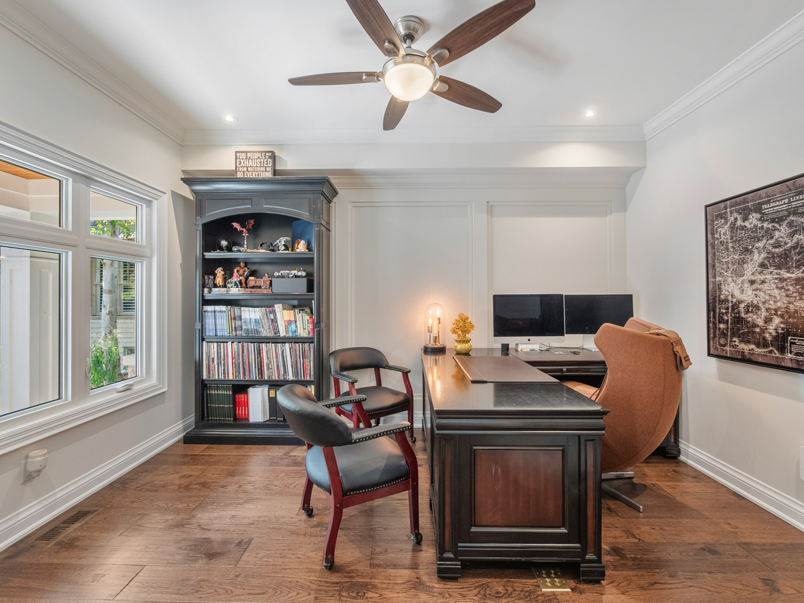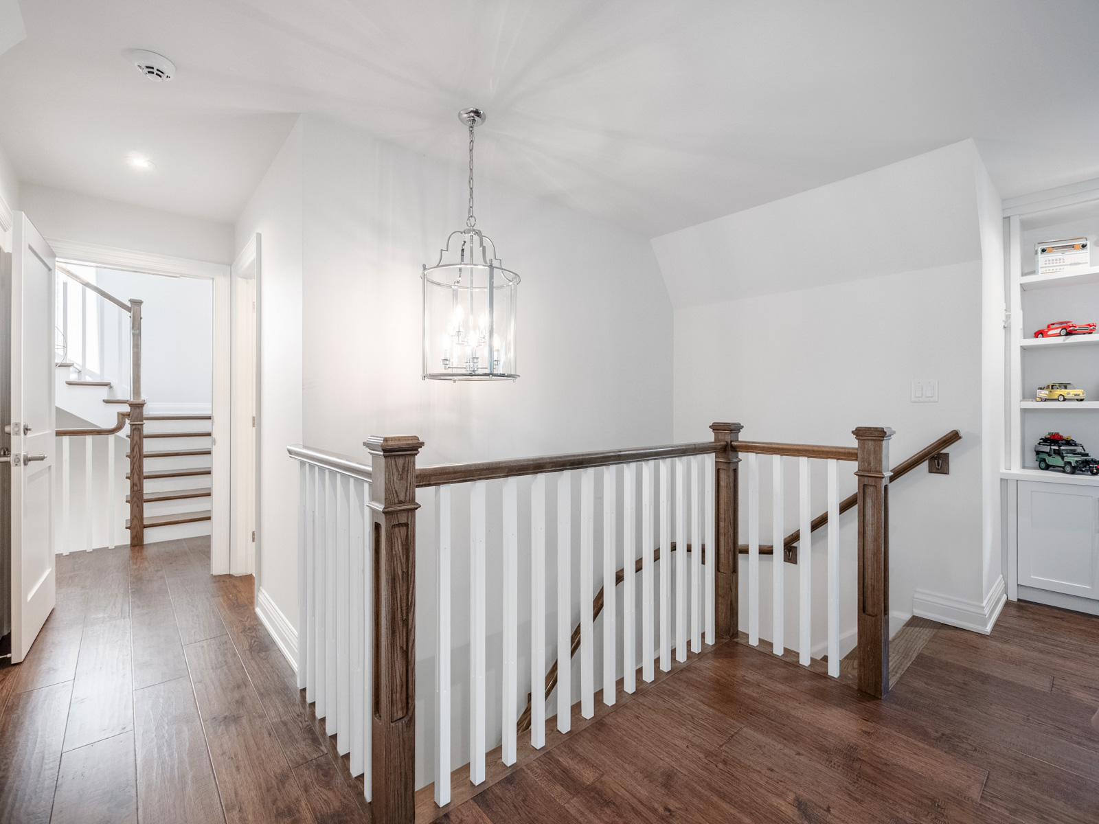 Set on prestigious Lakeshore Road in Roseland, one of Burlington's most sought-after neighbourhoods, this custom-built residence offers over 6,000 square feet of finely finished living space on a rare 217-foot-deep property. Located within the Tuck/ Nelson school district and just steps from the lake, it combines an exceptional address with remarkable scale and design. The main level is anchored by an elegant great room with a gas fireplace, custom built-ins with glass accents, and expansive windows overlooking the rear gardens. A private home office, formal dining area with a wet bar, and a chefs kitchen designed for both daily living and entertaining set the tone for the home. The kitchen features a large quartz island with seating, dual dishwashers, dual Frigidaire Professional wall ovens, a gas range with decorative hood, warming drawer, microwave, and KitchenAid stainless steel refrigerator with ice and water. Custom soft-close cabinetry, a walk-in pantry, and a walkout to the covered patio complete this well-appointed space. A separate main floor laundry room with custom cabinetry, quartz counters, adds convenience. Upstairs, four bedrooms each feature their own private ensuite baths and custom closet organizers, including a self-contained in-law suite with a separate entrance featuring a living area, bedroom, and full bath ideal for extended family. The 3rd loft, currently used as a gym, offers flexibility as an additional bedroom or creative studio. The fully finished lower level extends the living space with a large recreation room with a wet bar, sitting area with gas fireplace, sixth bedroom with ensuite, music/media room, and a walk-up to the backyard. Set on a 200-foot-deep lot, the property offers rare privacy and scale, with a resort-style backyard featuring a heated saltwater pool, stone patio, covered terrace and outdoor kitchen. A three-car garage and additional parking complete this distinguished home, just minutes from downtown Burlington and the lakefront.