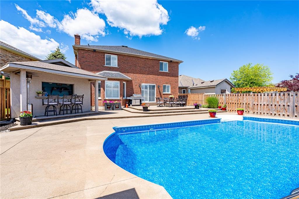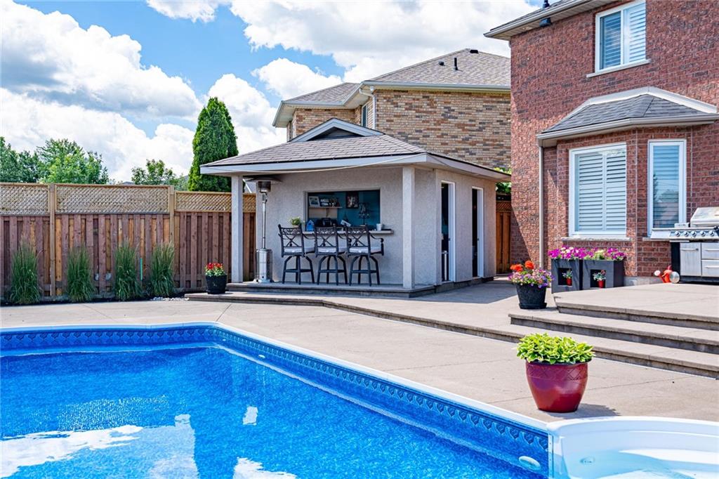 Upstairs Leads You To Four Bdrms & Two Full Baths Including A Massive "L" Shape Primary Bedroom (Could Split Into A Fifth Bedroom), With Gas Fireplace, Two Walk-In Closets And 3-Pc Ensuite. The Bsmt Features A 33 Ft By 12 Ft Rec Room With Wood F/P Plus A Gym Space & 2-Pc Bath. Make Your Way To The Backyard Oasis W/An 18Ft X 36Ft Inground Heated Saltwater Pool (Pump 2020 Liner 2017), Brick Storage Shed, Cabana W/Wet Bar & 2Pc Bath/Outdoor Shower, Stamped Contrete Patio. Newer Roof (2018), 200 Amp Panel, Sump Pump, Inground Sprinkler System, Water Filtration System, Central Vac 2019 & Gas Bbq