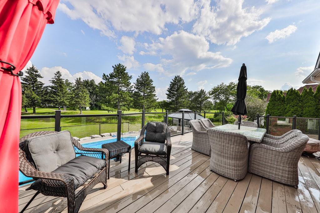 Welcome home. Spectacular family home with triple car garage backing onto the 4th green and 5th tee box at the Millcroft Golf Course. Fabulous backyard oasis with inground pool, professional landscaping, upper entertainers deck ideal for summer BBQ’s and plenty of additional patio space poolside for lounging. The main floor features extended ceilings in the foyer and family room, spacious white wraparound kitchen with stainless appliances, granite counters, a large working island, formal living and dining rooms, a convenient main floor office with a separate entrance.