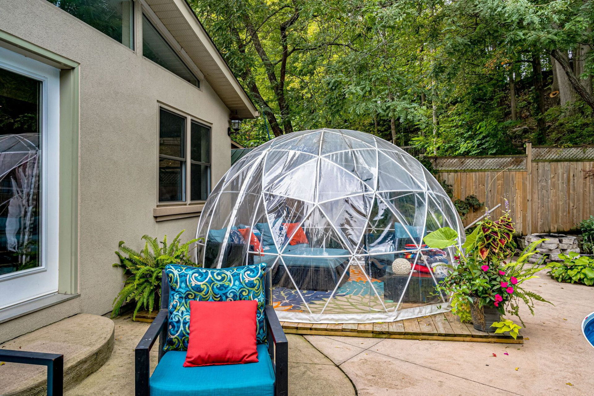 Step up the recently rebuilt oak staircase and enjoy the primary bedroom suite that boasts a built-in wall and walk-in closet, a spa-like ensuite with floating vanity and large format tiles, and a home office. The lower level features a home theatre, rec room, exercise room, bedroom, laundry, 2 storage spaces, and an additional bathroom. A little piece of paradise exists in the backyard which enjoys loads of patio space, a saltwater pool, professionally landscaped gardens with armour stone retaining walls, and a very private treed ravine lot. With too many features to mention, this one won't last!