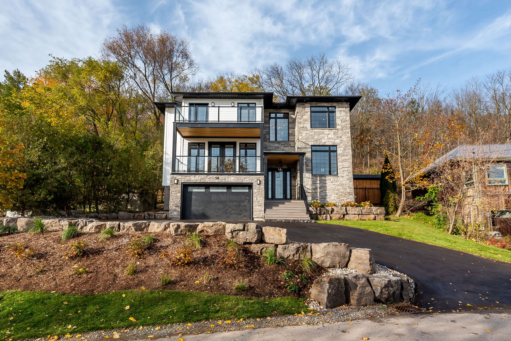 Welcome to 58 Parkside Avenue. Perched above the Dundas driving park and designed solely to provide luxurious living in one Hamilton’s most sought after areas. The WOW factor sets in when you open the door to see the open riser stairs, glass railing and the rest of the contemporary finishings this masterpiece showcases. You can bypass the stairs with in-home elevator making all three levels accessible for everyone. The perfect home for entertaining, with ample natural light in the corner den, the spacious dining room and walk out terrace from the living room.