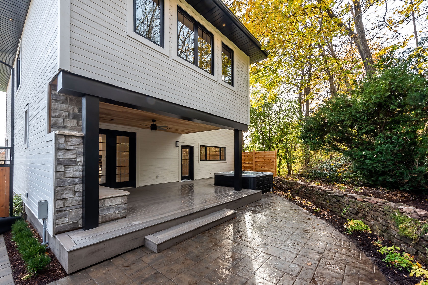 A kitchen fit for a chef, fully equipped with Wolf appliances, built-in espresso maker, quartz countertops and wall-splash, separate pantry and custom cabinetry. Enjoy the serene wooded surroundings of the backyard from the covered deck, hardscaped patio or brand-new hot tub. The primary suite features customizable walk in closets, gas fireplace 5 pc ensuite that will be envied by all and a walkout terrace perfect for morning coffee. Three more bedrooms with shared 4 pc bath. Fully finished basement with cozy family room, workout room/office, mud room with washer/dryer and out of sight mechanical room is where you’ll find 200amp service panel; furnace; HRV. The two-car garage, with epoxied flooring is wired for electric car charge port. This stunning one-of-a-kind home has every conceivable feature and is move-in ready!