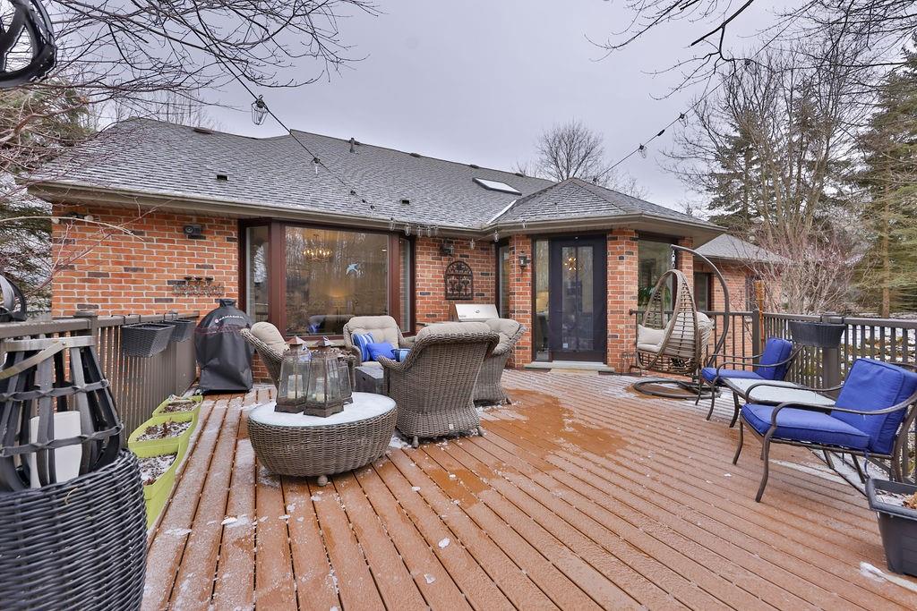 Welcome home. Beautifully renovated home offering 4,000 sqft of living space set on a private retreat of 2.38 acres on a ravine lot. Rarely offered, sought-after Village of Kilbride on a prestigious cul-de-sac with picturesque wooded views. This incredible Branthaven custom built, all brick bungalow offers 4 bedrooms, 5 bathrooms (2 ensuites w/heated flooring), gourmet kitchen, 9’ ceilings, formal dining roomhuge eat-in kitchen with quartz counters, breakfast bar, 2 spacious primary suites, new patio doors and windows. Family room showcases a stunning custom gas fireplace, custom built-in cabinets and wide plank flooring. This gorgeous home has tons of quality upgrades, such as extended doors and windows. Elegant open hardwood staircase leads you to the lower level…perfect teenager retreat, inlaw or nanny space or as a potential income suite (separate entrance).
