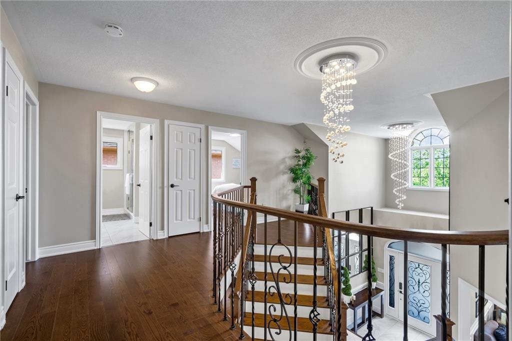 This stunning fully renovated home features 4+2 spacious bedrooms and 3.5 bathrooms, offering ample space for families or those who enjoy having extra room. Spanning 3,552 square feet, the home is designed for both comfort and luxury. Nestled against the picturesque backdrop of the Escarpment, this property provides breathtaking views and a serene outdoor environment, complete with 2 extra-large concrete pads, artificial turf, pergola and hot tub. This home offers multiple living spaces, oversized kitchen and dining area, ideal for entertaining. Brand new kitchen, hood vent and 36 inch gas cooktop with a 10 foot island. Brand new main floor tile throughout. Two fireplaces and a home theatre. Two full car garage with new epoxy floor and four parking spots on driveway. The walkout basement enhances the living space further, providing additional options for a multi-generational home or an in-law suite. This home combines modern amenities with a tranquil setting, making it a perfect choice for those looking to enjoy both comfort and the beauty of nature.