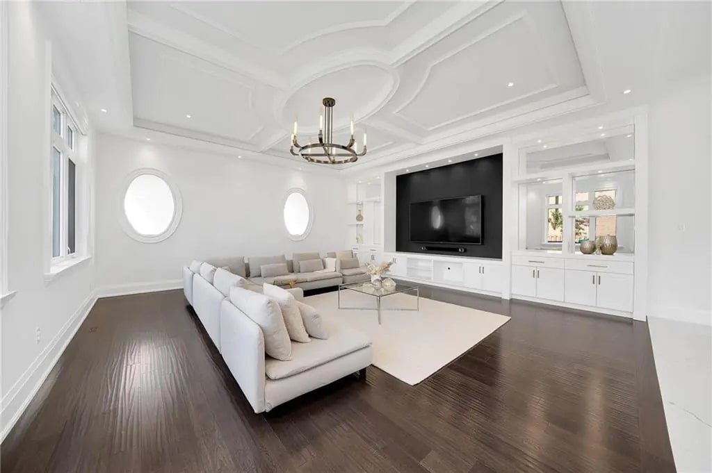 Separate walk up entrance to basement where In Law Suite has been converted to lounge with Kitchenette and has rough ins for larger kitchen and Sauna. Heated floors, smart home integration, full landscaping irrigation system and professionally landscaped property. 3 Car Garages have extra height to accommodate for car lifts or storage. Interlocked driveway with Parking For 9 Cars. High quality Custom Finishes and an abundance of luxury, this home is loaded with upgrades!